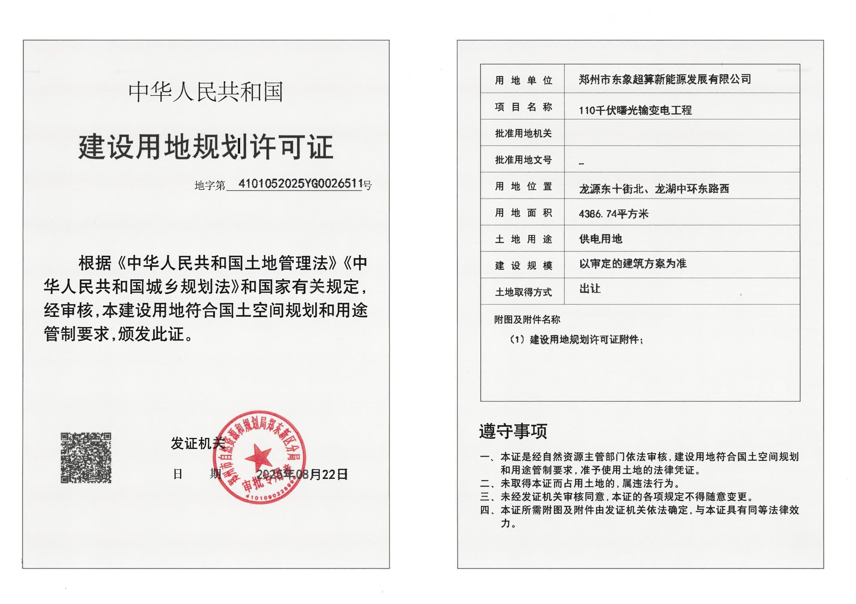 110千伏曙光输变电工程建设用地规划许可证批后公告