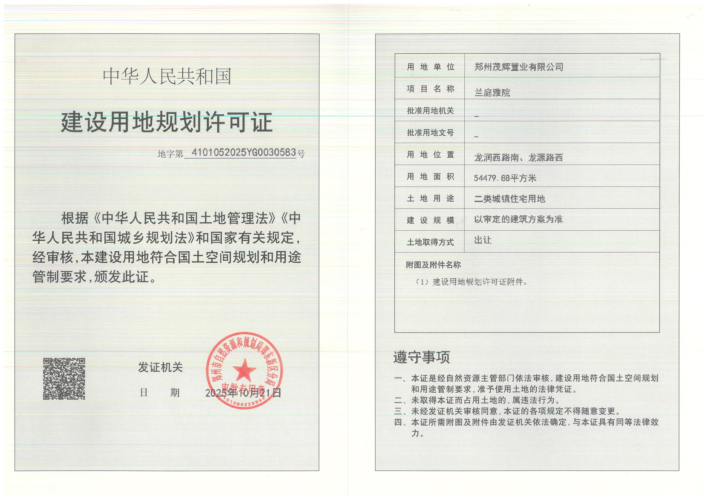 兰庭雅院建设用地规划许可证批后公告